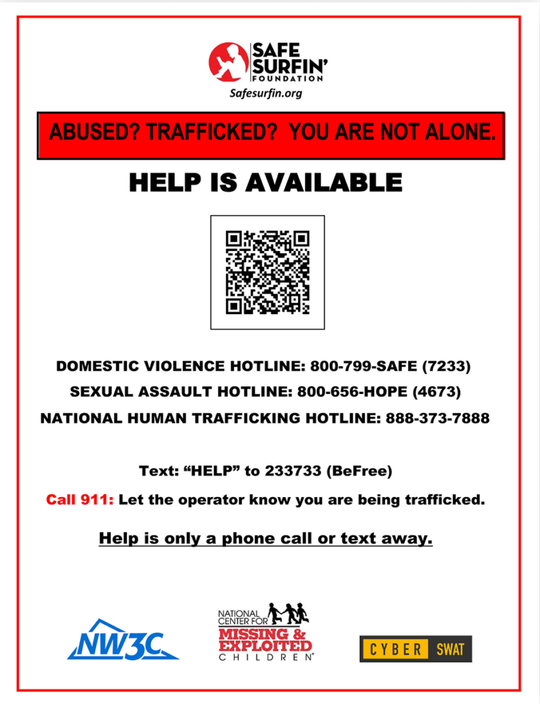 Human Trafficking continues to be an issue in the U.S., one that needs to be addressed, by preparing our children and teenagers who are at higher online risk of falling prey. The Safe Surfin’ Foundation has collected many resources to aid in educating communities through its Cyber SWAT program. ALL TEENS and CHILDREN need our help to equip them with the tools to not become a victim of this heinous crime.